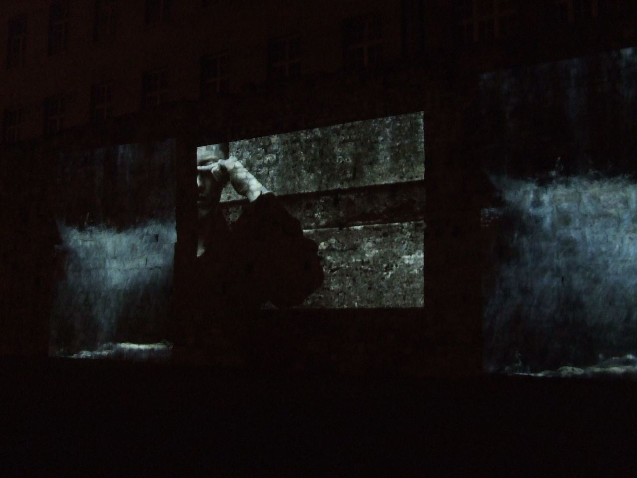 Privés de la possibilité d’assister au récit originaire nous nous amusons à écrire nous mêmes les histoires, trouver les fantômes et sympathiser à leur victimes. Ou essayer de lire au delà de la narration et choisir à contempler l’eau qui coule dans une intemporalité et une espace commune avec des séquences des japonais dans le Tokyo d’il y a dix ans. Ou simplement nous mettre à l’écoute de principes philosophiques, existentiels de la méditation, de la nature et de l’esprit. Dans le clair de la lune la tradition asiatique et son interprétation par l’art de la danse, du son et de l’image, imprimés sur les murs d’un Paris inexistant, rentre en un contact plus intime et direct que jamais avec tous nos sens.
