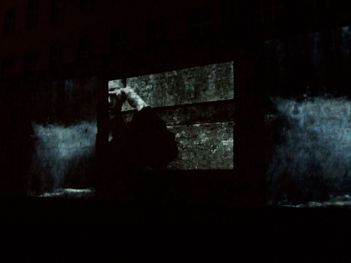 Le vide est en fait le théâtre le plus cohérent pour l’installation que Yuka Toyoshima nous propose dans les jardins Saint Paul. Parce que c’est un vide imprégné de mémoire : c’est l’enceinte de Philippe Auguste, une pièce héréditée de l’époque médiévale que pour l’artiste japonaise devient un écran et une feuille vierge pour accueillir ses idées. Sur les pierres s’étale un triptyque d’images animées dont les deux cadres latéraux présentent en plan fixe des chutes d’eau lors que dans celui central on suit ce qui sera le fil …narratif… Il enchaine de scènes de danse, footage, paysages urbaines et de la nature qui nous offrent des chemins à prendre pour déchiffrer ce qui pour l’instant demeure une énigme.